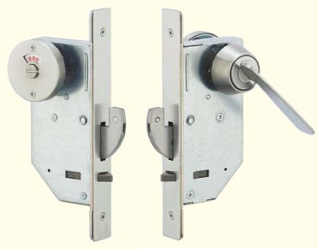 鎌錠は施錠時に鎌(かま)のような金属部品が飛び出し、ドア枠の受け金具に引っかかってロックされる構造で、引き戸タイプのトイレに使用されます。