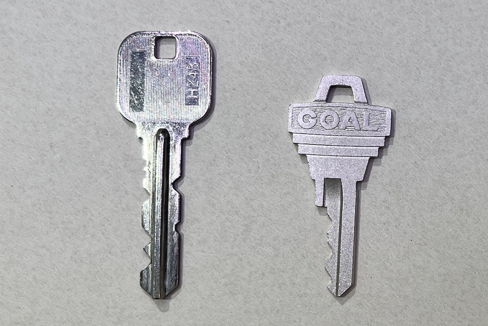 (左)ディスクシリンダーの鍵、(右)ピンシリンダーの鍵